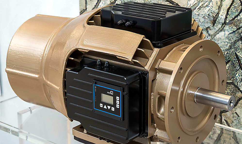 KSB Group heeft een prototype ontwikkeld van een zeer compacte 22 kW synchrone reluctantiemotor met ingebouwde frequentieomvormer. Het nieuwe prototype maakt gebruik van de nieuwste halfgeleidertechnologie die zorgt voor een volledig nieuwe koeling om warmte uit de vermogenselektronica af te voeren.Door de frequentieomvormer in de motor in te werken zijn de ontwikkelaars erin geslaagd het volume van de unit met meer dan 25 te reduceren vergelijking met het traditionele ontwerp. Met het prototype wil KSB het potentieel van moderne onderdelen uit siliciumcarbide op het vlak van motorvermogen aantonen.