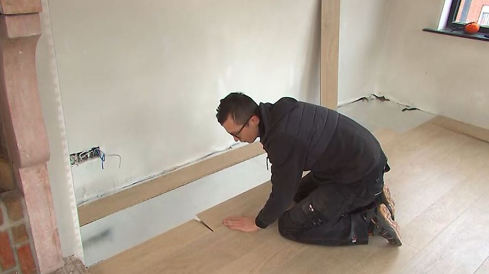Ook het profiel kleef je vast met polymeerlijm. De plinten en profielen werken de overgang tussen muur en vloer mooi af, en ze verbergen de uitzetvoegen. Door de plinten te plaatsen, is je vloer ook meteen afgewerkt.